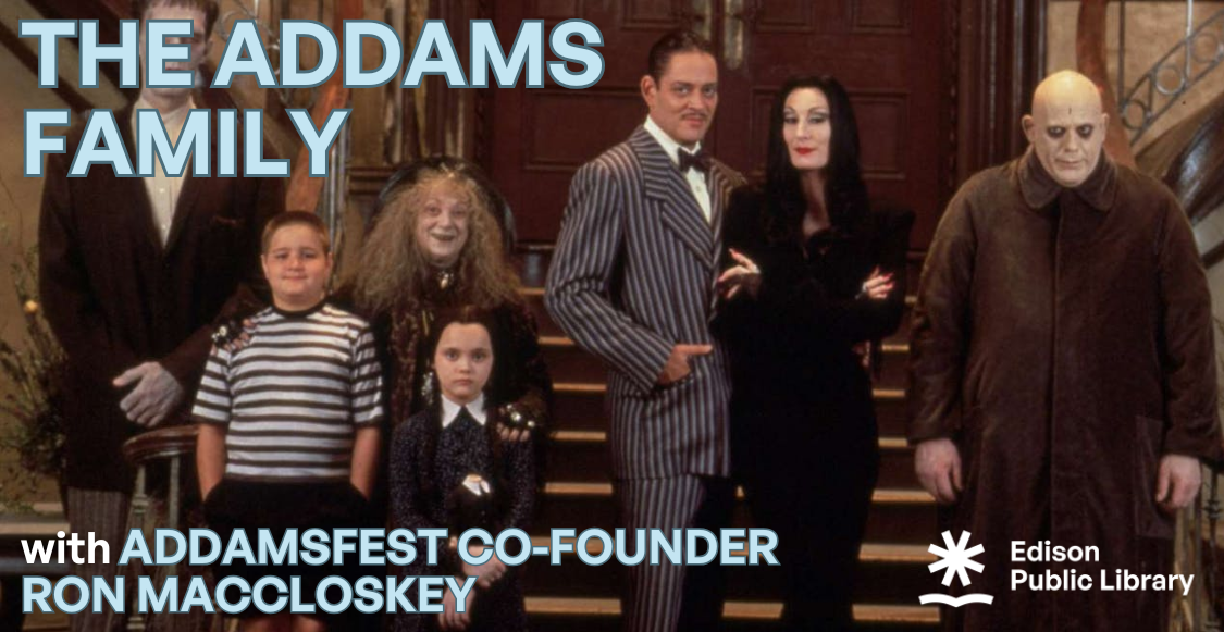 Edison Public Library patrons are invited to join Ron MacCloskey, a documentarian, producer, TV host, and co-founder of Addamsfest, at the Main Library on Monday, September 29, at 6:00pm for a program about Addams’ creepy and kooky, mysterious and spooky, and altogether ooky creations.