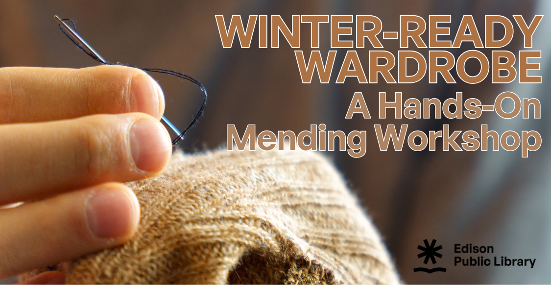 Adult patrons 18 and older can join Sew It! Workshop for a Hands-On Mending program taking place on Wednesday, January 14 from 7:00 to 8:30pm at the North Edison Temporary Branch. At this time, Ellen Lumpkin Brown, founder of Sew It! Workshop, will provide step-by-step guidance in hand-sewing sturdy patches and all will leave with a small sampler and mini kit to continue practicing mending at home.